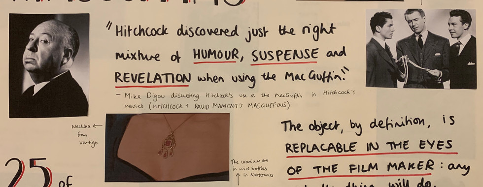 As an initial experiment with MacGuffins, I wanted to immerse myself in the time when Hitchcock made the MacGuffin famous. Used with a mixture of "humour, suspense and revelation" (Digou) Hitchcock managed to perfect the use of a MacGuffin in his film making, and these specialist objects appeared in 25 of his films.